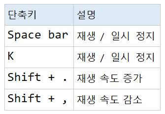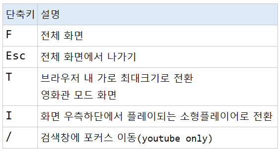 Youtube 유튜브 단축키 ShortCut