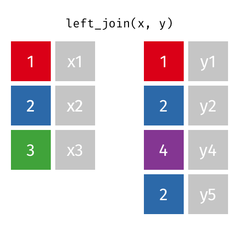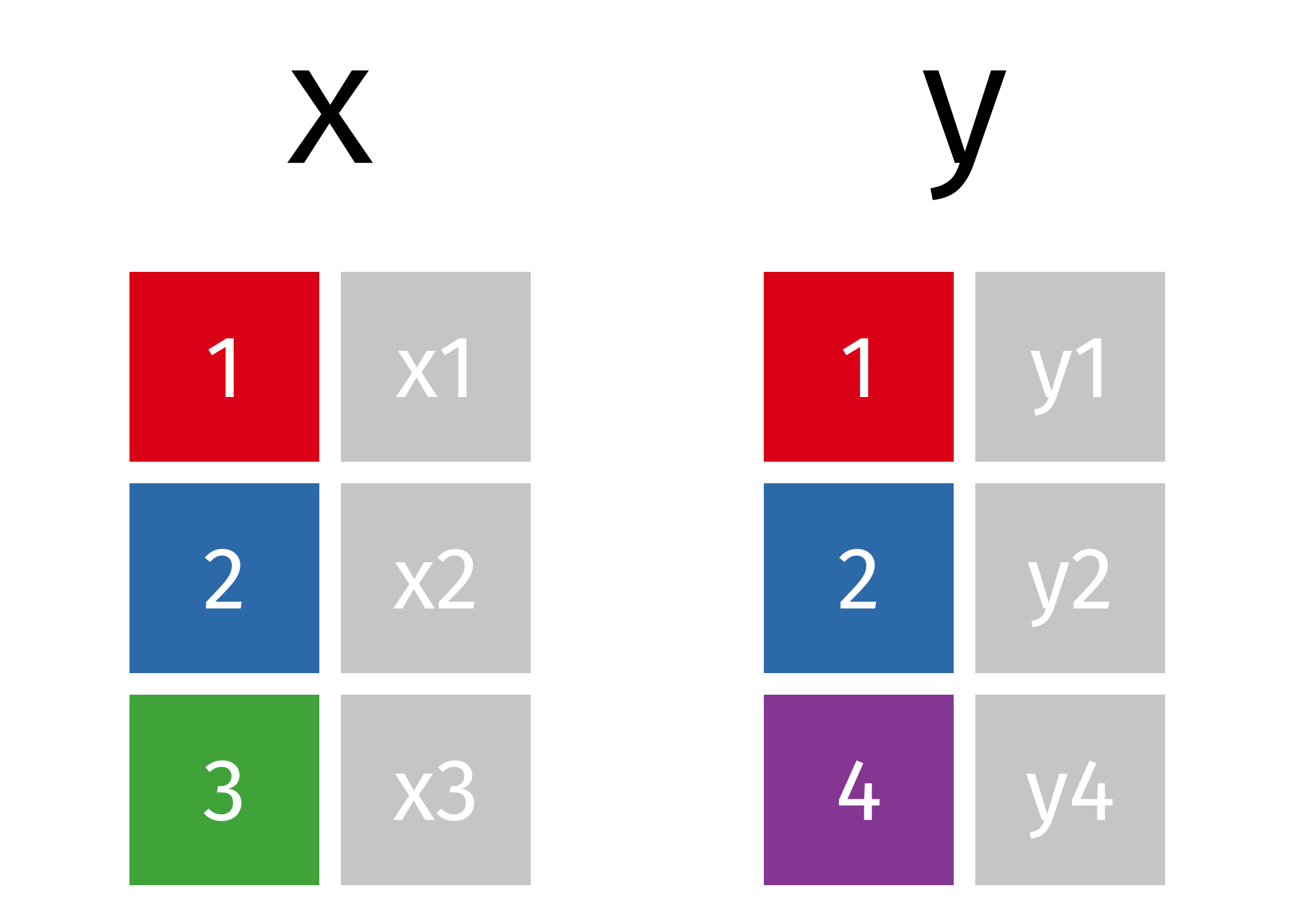 Inner Join Left Join Left Join (Extra Rows in y) Right Join Full Join |